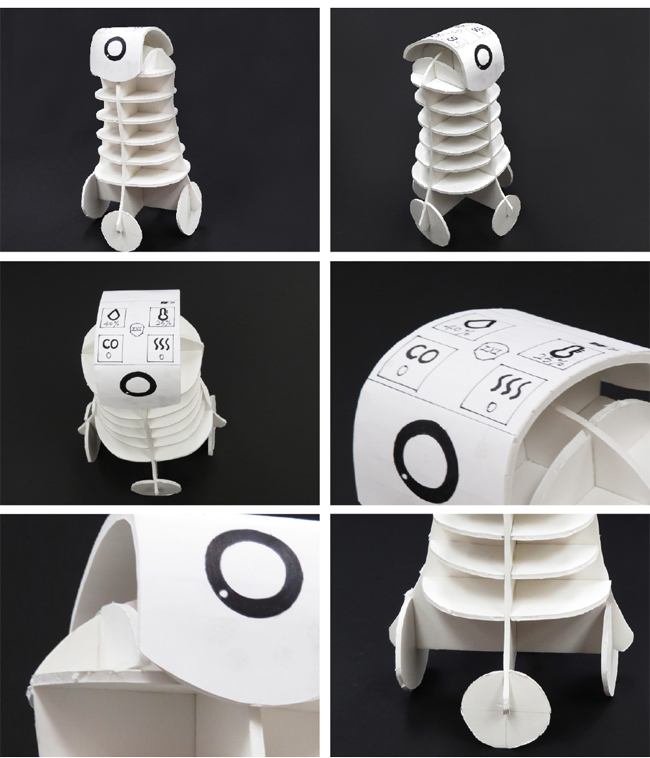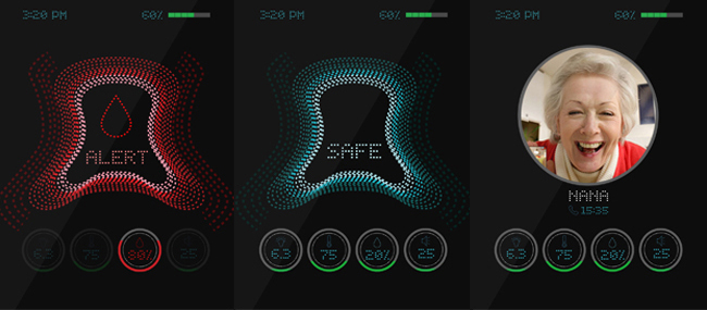 The main functions of display interface are providing clear and simple security information and alert notification when accidents happen. Users can also place robot on table and have video call though the display. When residents come back home, the robot will greet them with smile emoticon on its display to enhance the relationship between human and product.