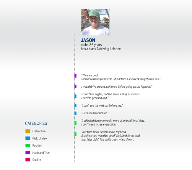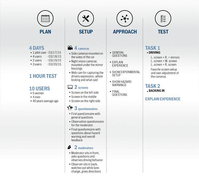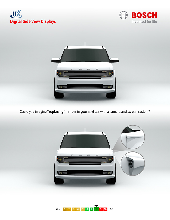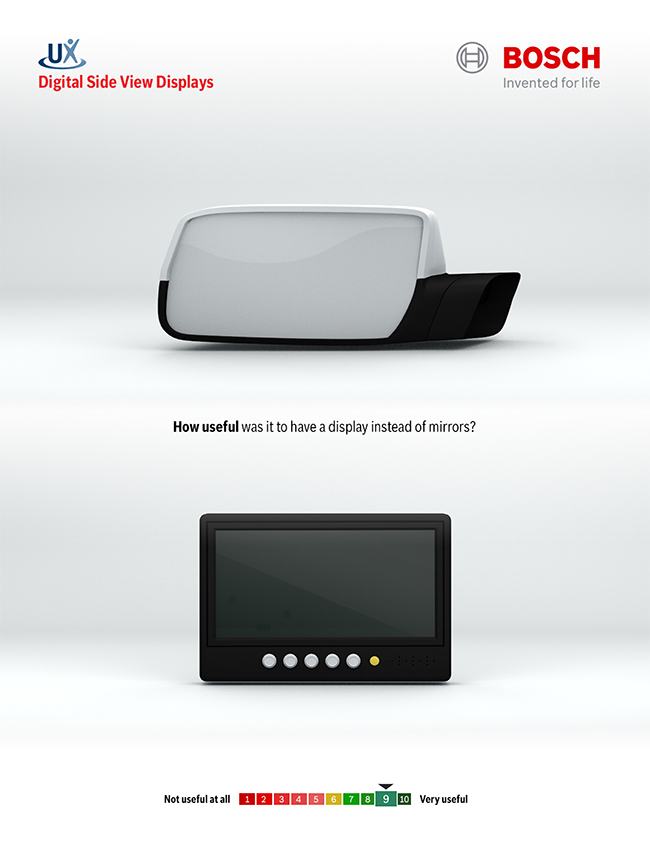 Investigate and design the best use of video screens in cars to replace mirrors, to provide comfortably familiar yet substantially improved experience for drivers.