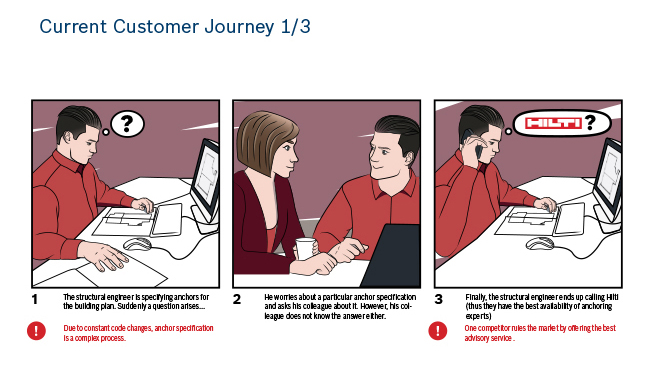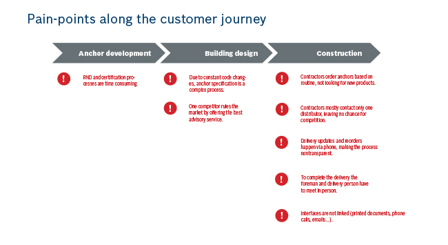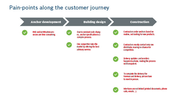 A new customer journey has been developed using service design approaches such as stakeholder interviews and customer journey mapping. The final deliverables such as top findings, design principles and opportunity areas provides a framework (online / offline) for a new go-to-market strategy for concrete anchoring.